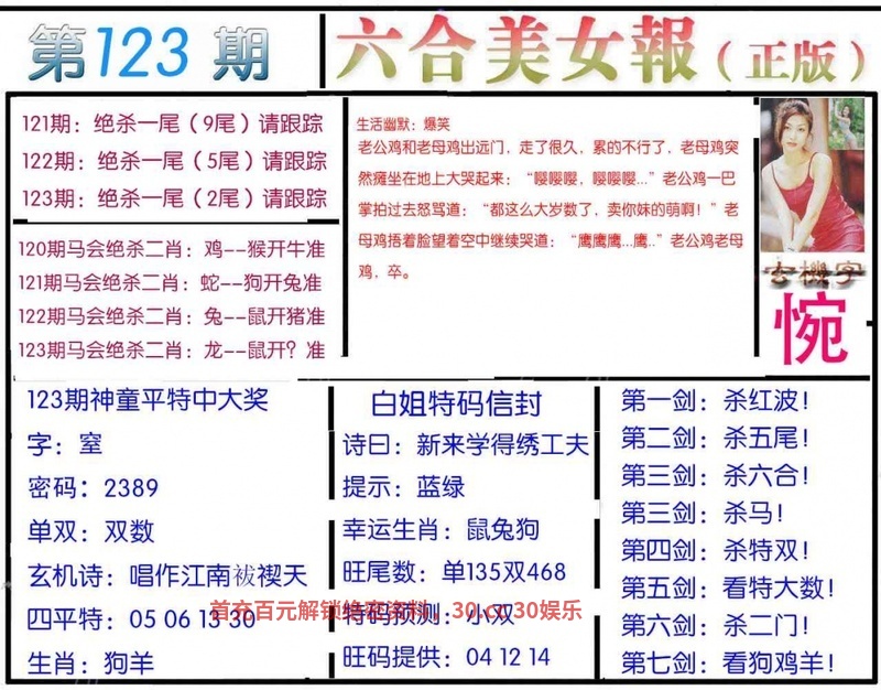 | 123期 | 狗 | 9尾 | 0头 | 羊23 |